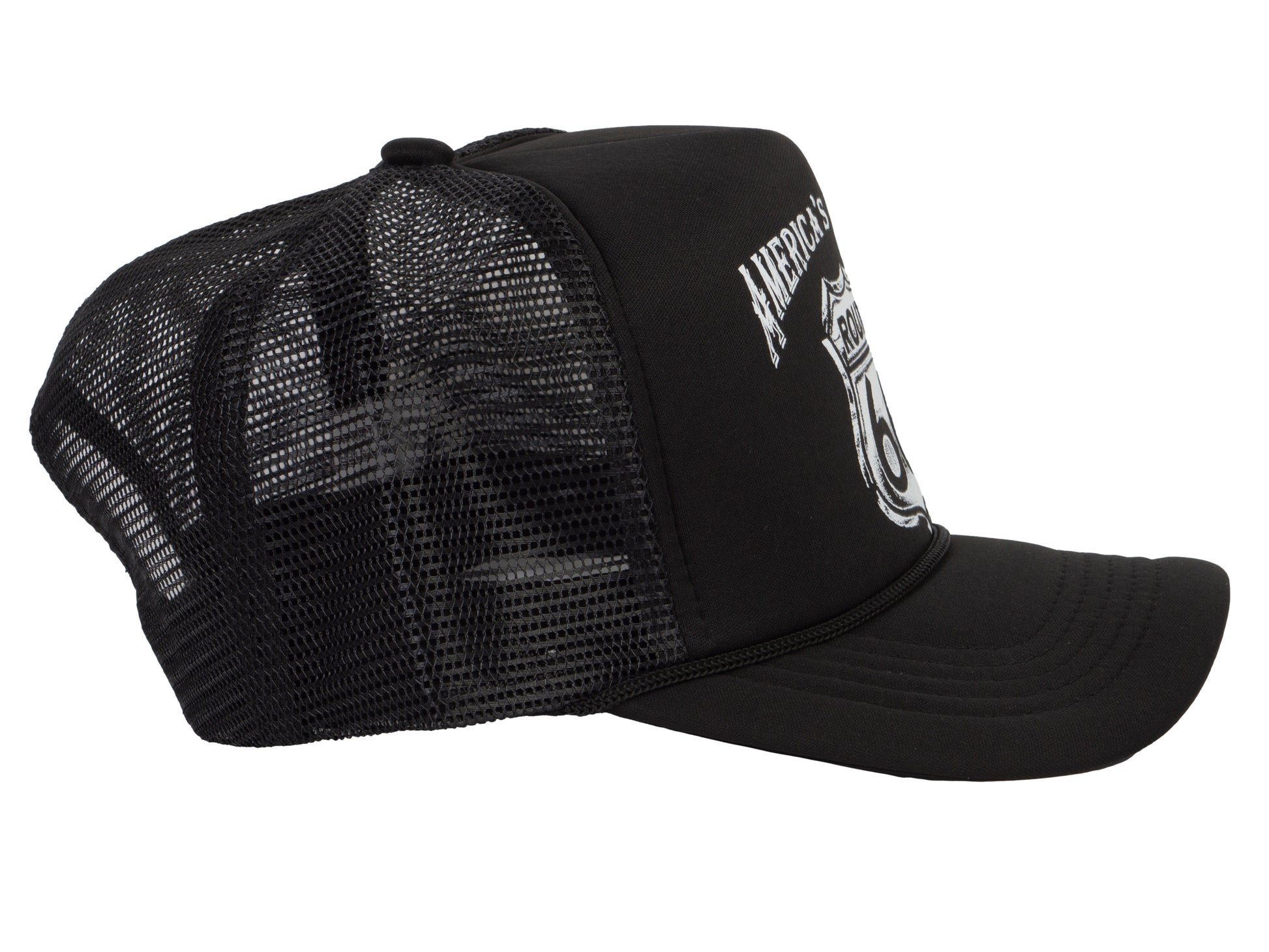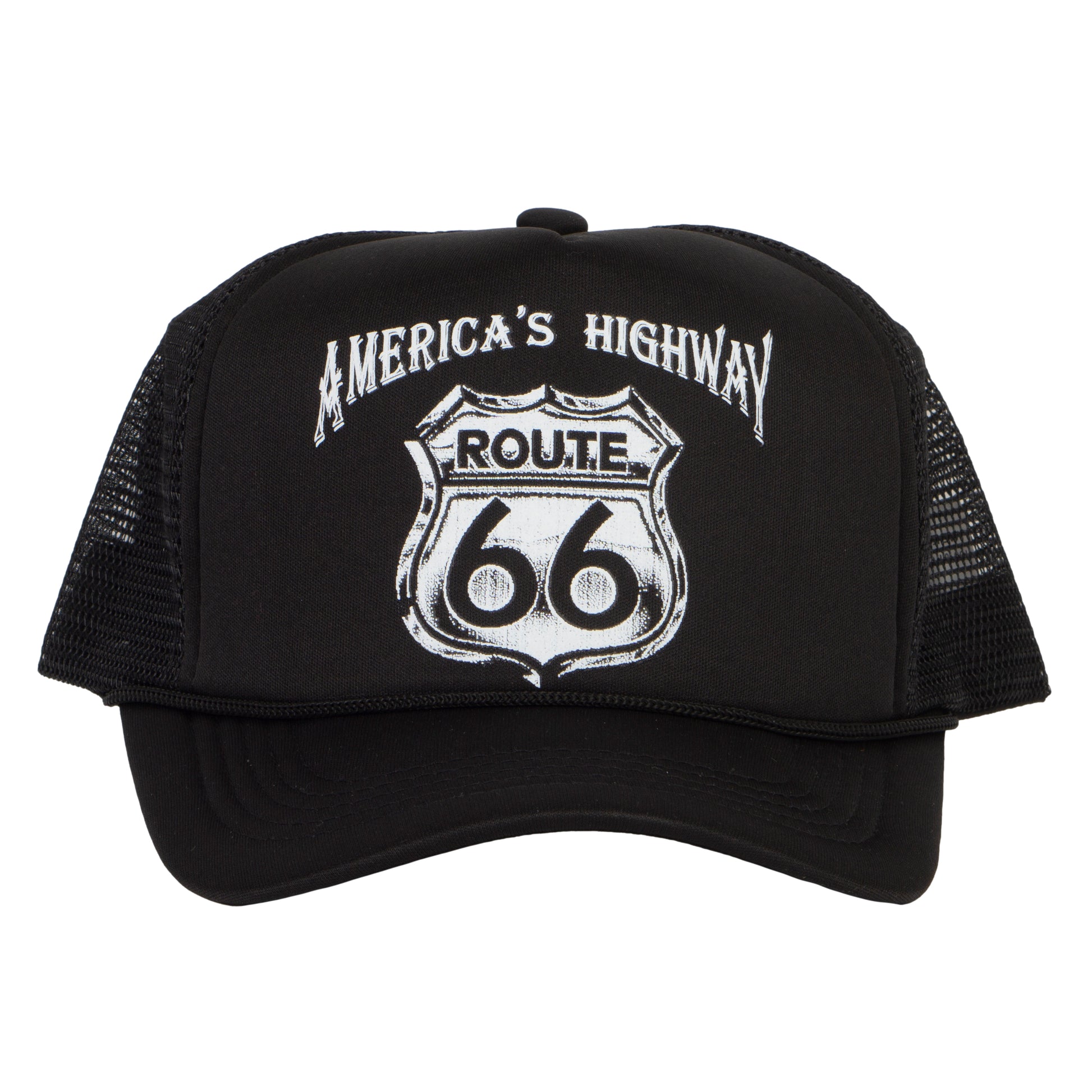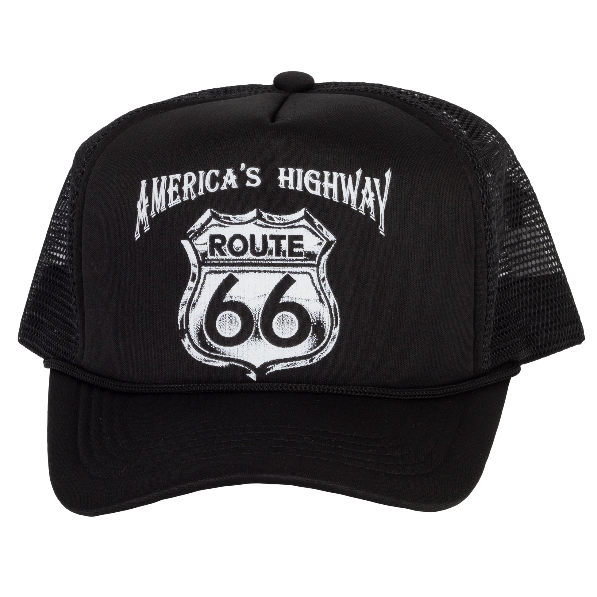 Hit the open road in timeless style with the Route 66 “America’s Highway” trucker hat—a tribute to the spirit of freedom and adventure. This classic black cap features a bold, vintage-inspired Route 66 emblem that instantly evokes the nostalgia of cross-country drives, roadside diners, and endless horizons. With its structured front and breathable mesh back, it delivers all-day comfort and a laid-back look that’s as iconic as the highway itself. Whether you're cruising down the freeway or just channeling road trip vibes, this hat is your perfect co-pilot for wherever the journey takes you.