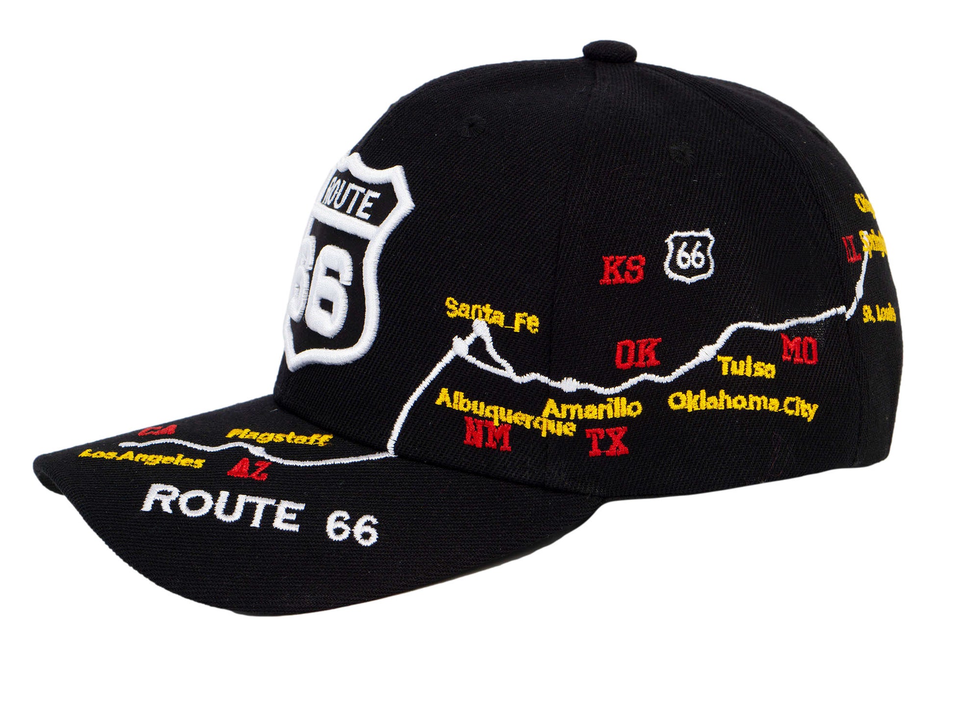 Route 66 Embroidered Hat – Classic Cap with Historic Highway Map Design Black